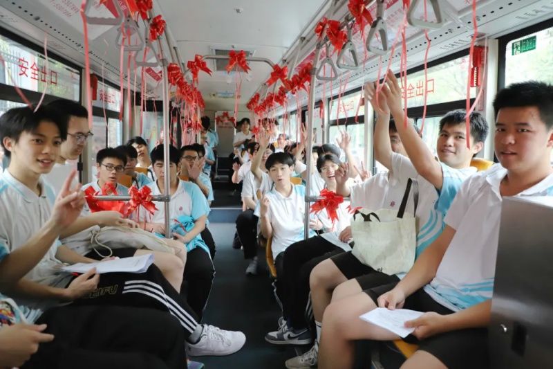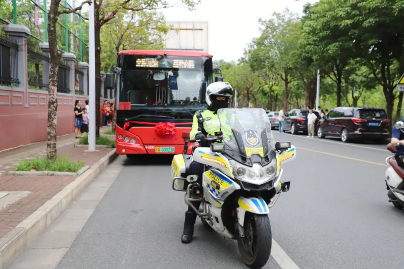 社会各界也纷纷加入护航行列:公交公司的司机师傅们不仅为考生准备了“高考必胜”纪念胸针,还把车厢装扮得温馨励志,车窗上“高考加油,北附必胜”的标语格外醒目;铁骑交警则提前疏导交通,全程护航送考车队,确保学子们顺利抵达考场。暖心的举措,汇聚成爱的洪流,为青春梦想注入无限力量。