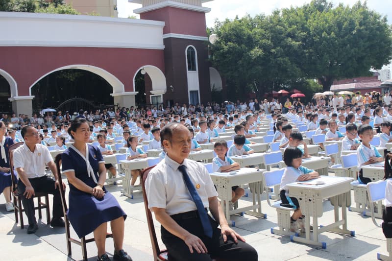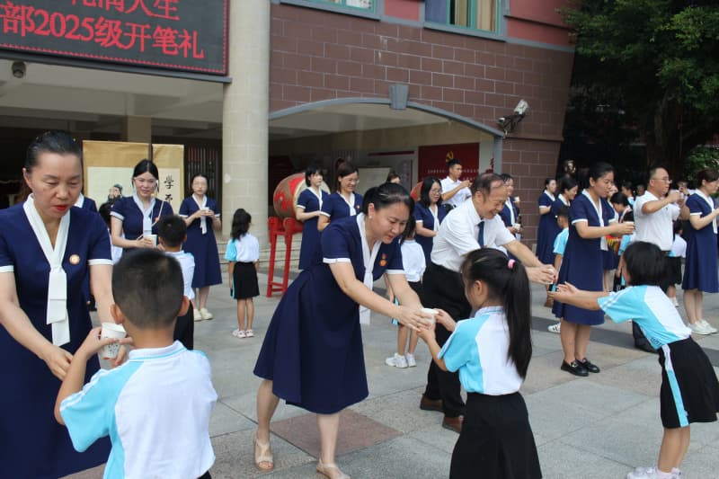 朱砂启智开双窍,墨笔书人涉五常。9月5日下午,小学部一年级全体师生及家长欢聚一堂,在太阳广场隆重举行2025级新生开笔礼启蒙仪式。学校校长唐喜杨、副校长兼小学部主任侯秋玲等领导出席活动。