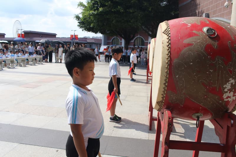 鼓声激昂,振奋人心。唐校长为一年级新生击鼓启蒙,激昂的鼓声犹如学海扬帆,象征着同学们将在美丽的北附校园开启充满阳光与快乐的求学时光。随后,一年级4名新生代表走上台前击鼓,鼓声三震,响彻云霄。每一次鼓响,都在同学们心中播下梦想的种子。