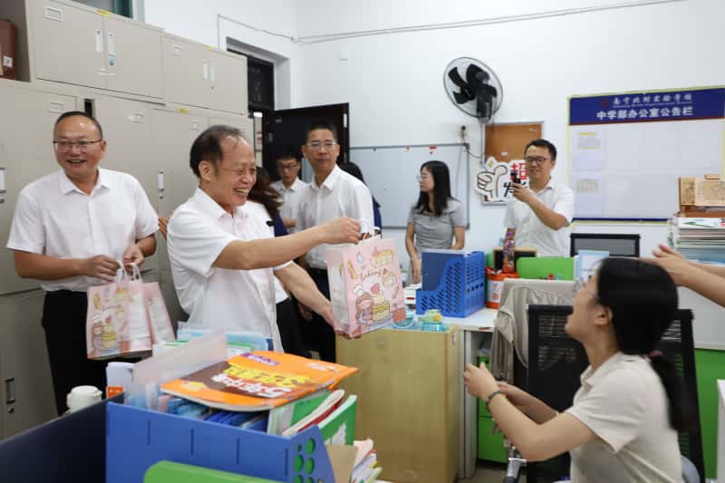 上午9时许,在唐喜杨校长的带领下,学校领导班子成员到中学部教师办公室,亲切慰问辛勤奋战在教育教学一线的教师们,并将精心准备的礼物送到大家手中。“教师节快乐!”“老师们辛苦了!”句句问候承载着学校对北附教师矢志不渝、立德树人的崇高敬意。这份节日问候,温暖了教师心田。