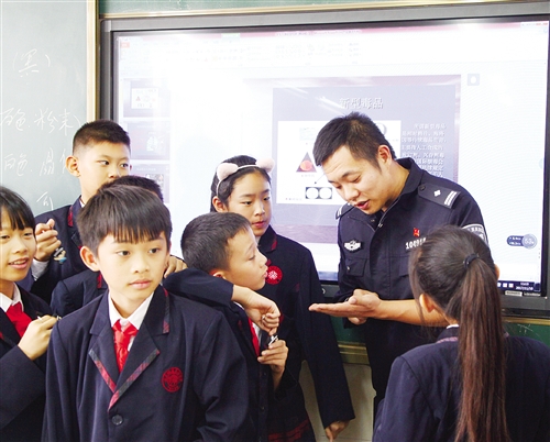 本报讯(通讯员 韦丽蓉 记者 韦薇)“同学们,当你一个人在家时可以给陌生人开门吗?”“不能!”听到民警的问题,北京大学南宁附属实验学校小学部五(2)班学生异口同声地回答。日前,南宁市公安局南湖分局刑侦大队民警来到该校开展法制校园行活动,将安全知识送到学生身边。