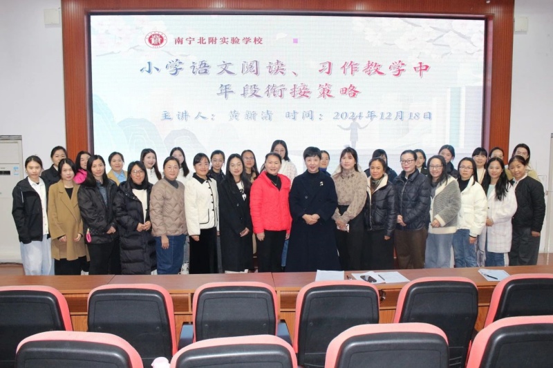 教研活动是教师成长进步的“扶手”,是提高教学质量的“助推器”,更是促进教师队伍进步的基石。为提高我校语文教师教学水平,12月18日上午,小学部邀请了南宁市科学研究所语文教研员、特级教师黄新清老师到校指导教研。